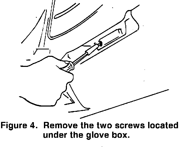 14. Remove the two screws securing the dash under the glove box (T25 or Phillips), see Figure 4.