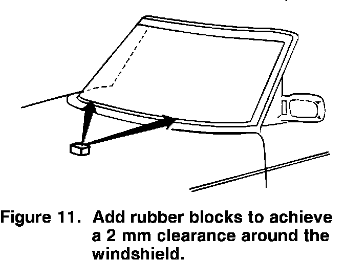 7. Test fit the windshield in the frame. Trim or add spacer blocks (P/N 69 91 244) to achieve a 2 mm clearance all the way around the windshield (Figure 11).