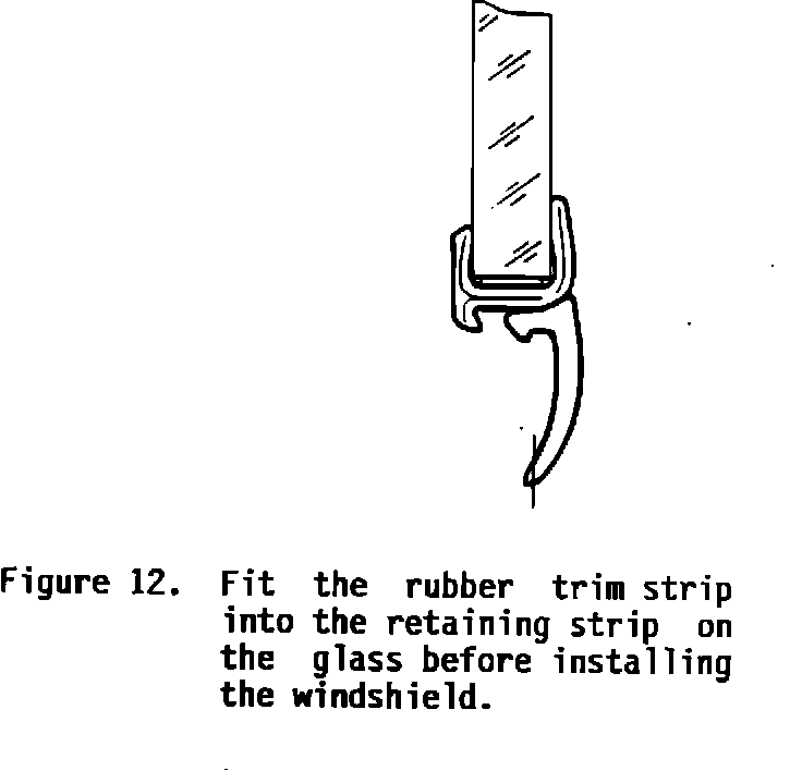 9. Install the rubber trim strip into the retaining strip on the glass (Figure 12). Fitting the trim before installing the windshield allows the glass to be adjusted more easily once in place on the car.