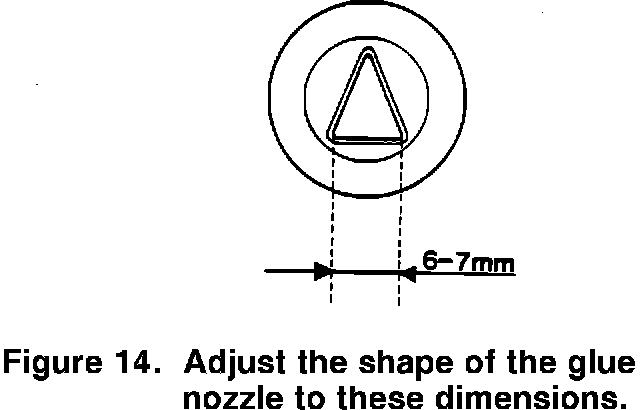 11. Adjust the shape of the glue nozzle as shown in Figure 14. Warming the nozzle in hot water will make forming the nozzle easier.