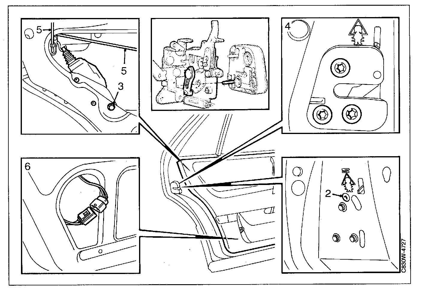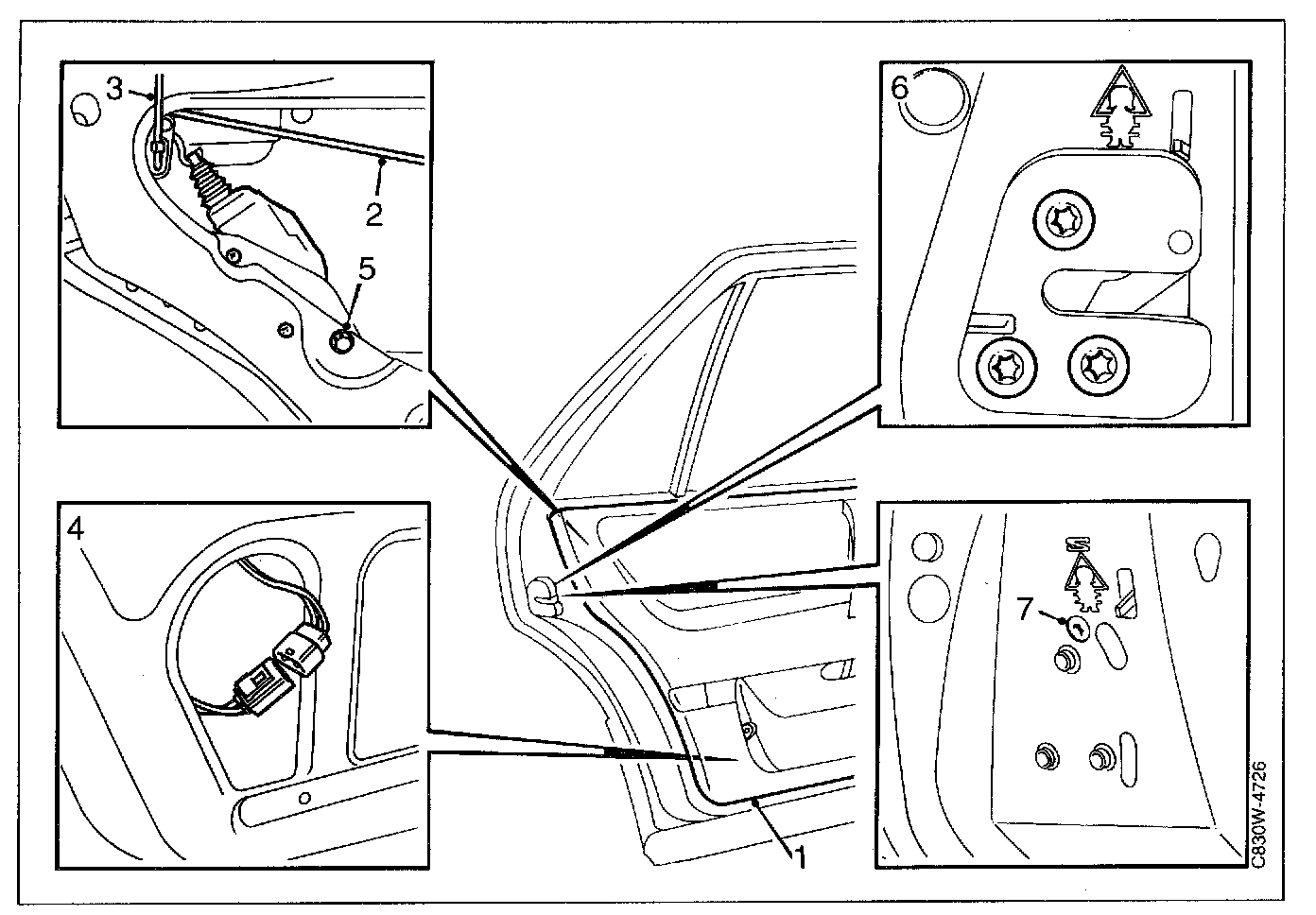 2 Disconnect the inside door handle tie rod from the lock mechanism.