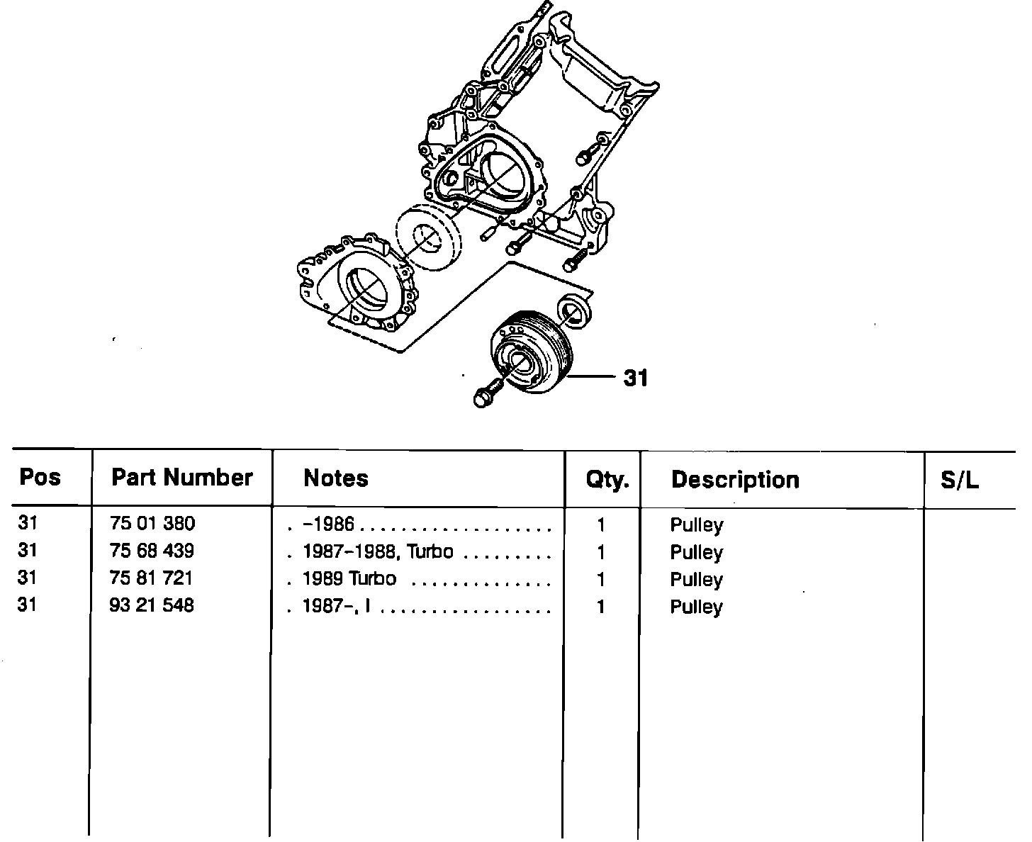 NOTE: All of the Turbo applications listed supersede to the 1990 B202 Turbo pulley, PIN 93 21 530.