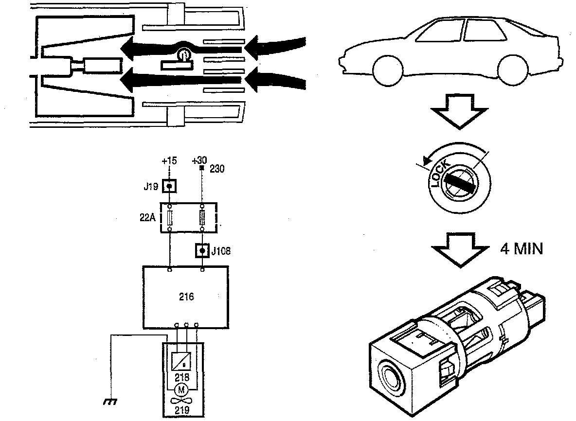 The sensor has a built-in suction fan which sucks cabin air past an NTC resistor. NTC stands for Negative Thermal Coefficient and means that resistance decreases as temperature rises.
