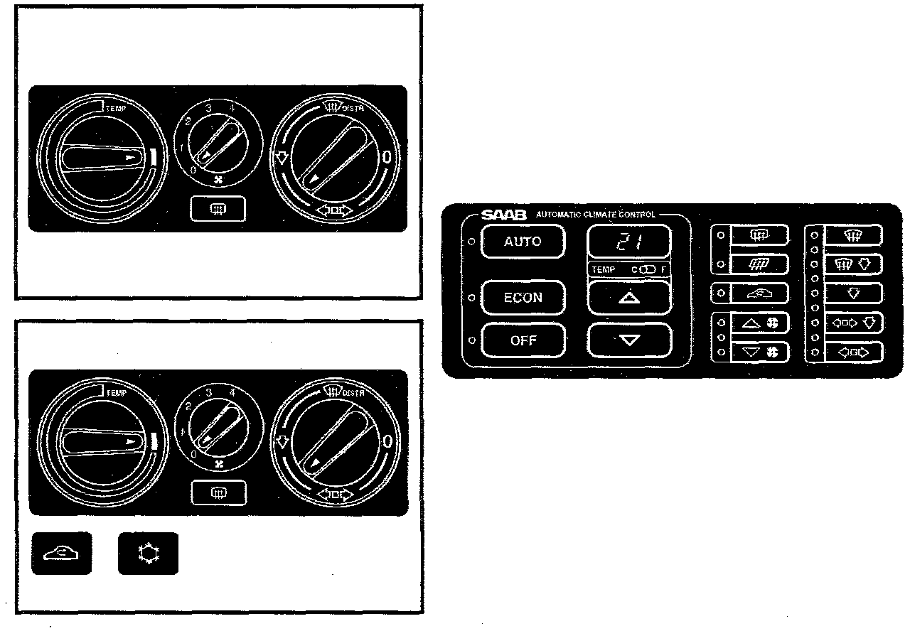 Heating and ventilation unit with automatic climate control meaning that the unit automatically maintains the desired cabin temperature irrespective of the temperature of the air outside. The design of the control panel varies slightly between year models.