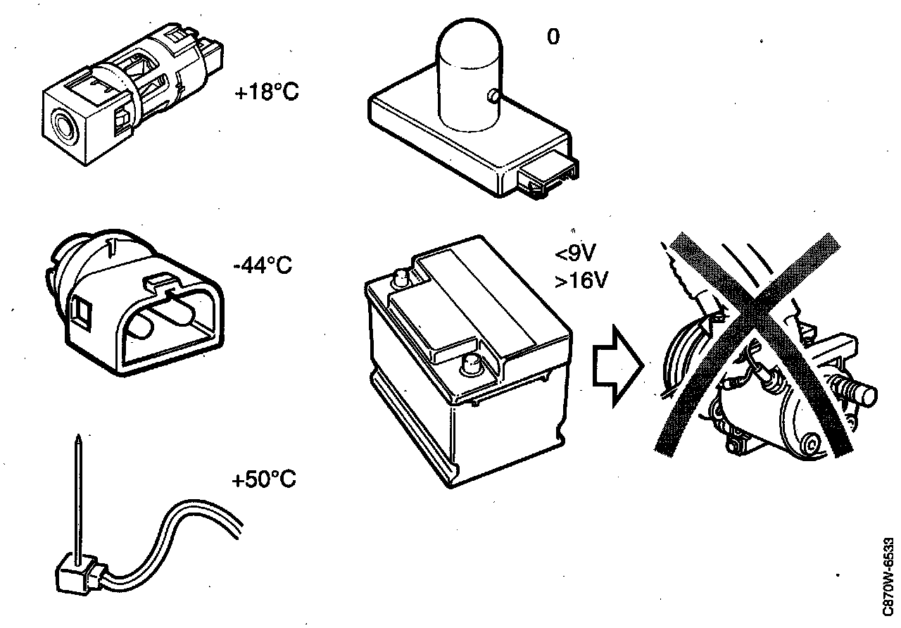 ^ If battery positive voltage in the ACC control module drops below 10.5 V, control of the stepping motors ceases, but the system continues to work with air mixing and air distributing dampers in the positions in which they were when the fault arose.