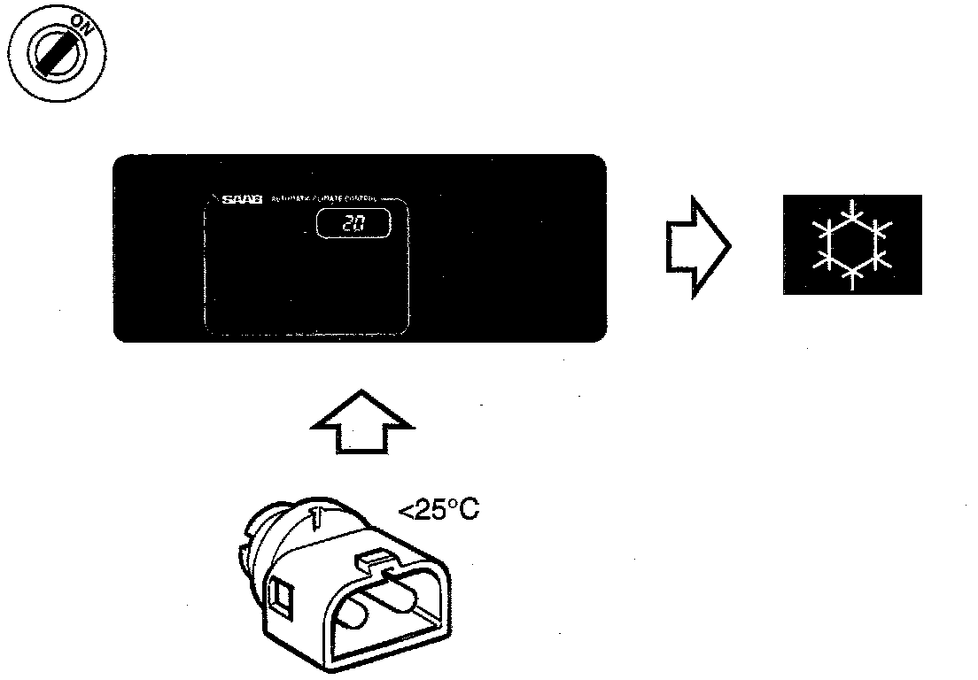 - Conditions are correct for starting from hot when the outside temperature exceeds the selected temperature by 5 °C (9 °F) or when the calculated value of blended air temperature is below +80 °C (95 °F).