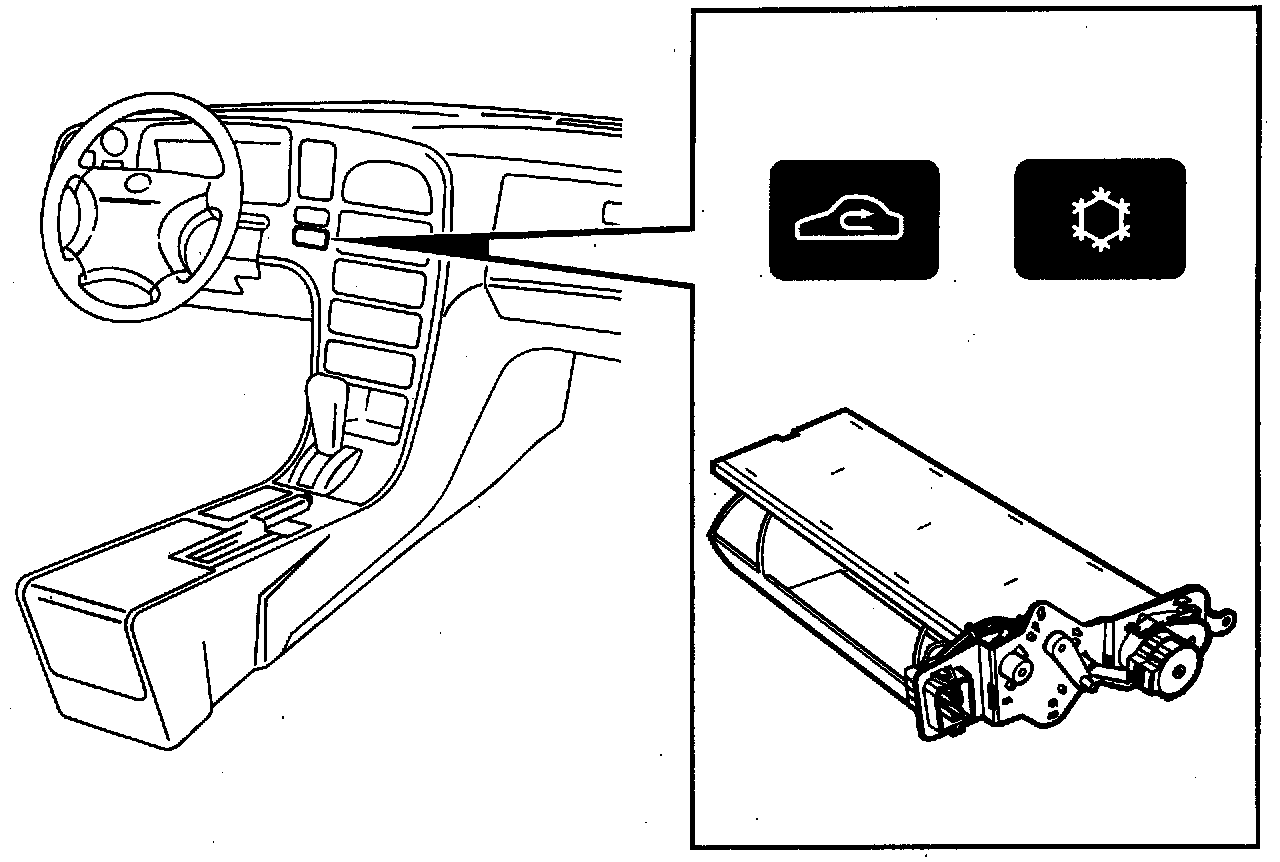 Cars with A/C have two push-buttons to the left of the control panel. One of these buttons is for A/C "on/ off" and one is for recirculating cabin air.