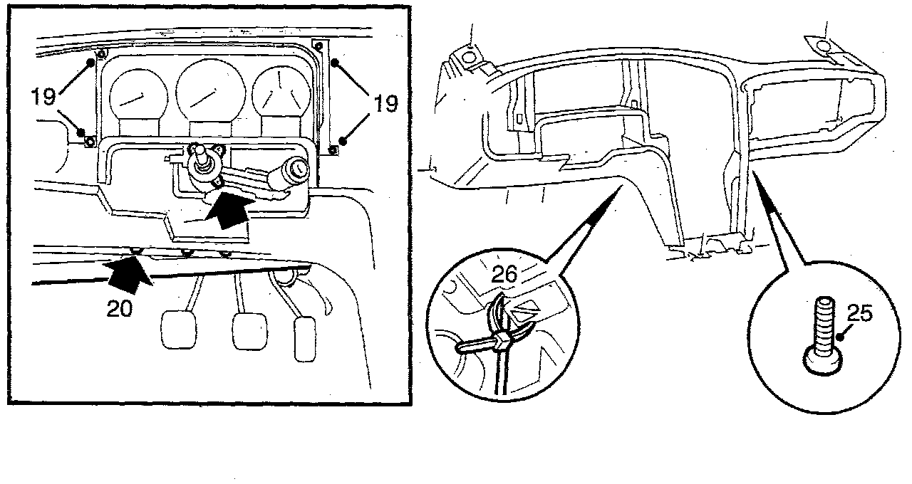 24. Remove screws securing the instrument panel and lift it out.