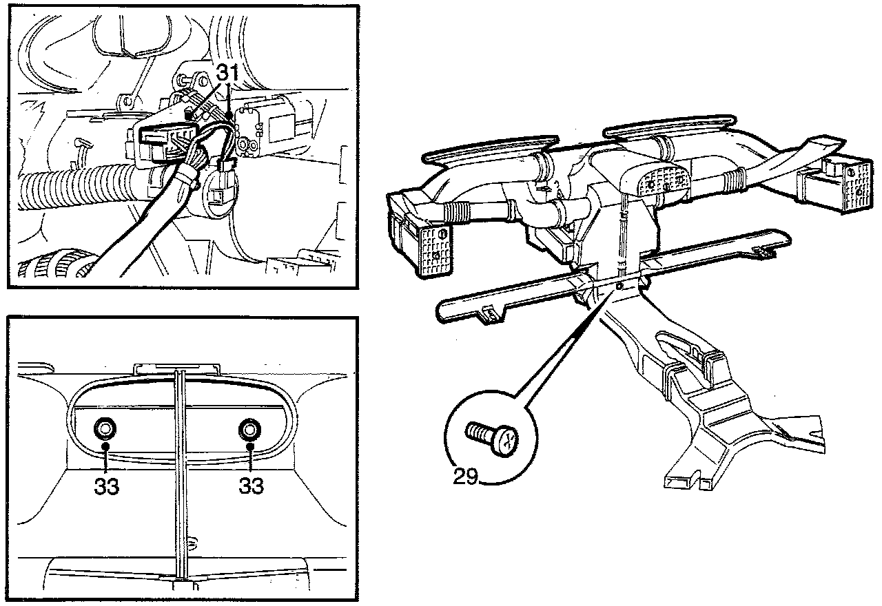 30. Unplug connectors for servomotor, fan motor and blended air sensor (cars with ACC only).