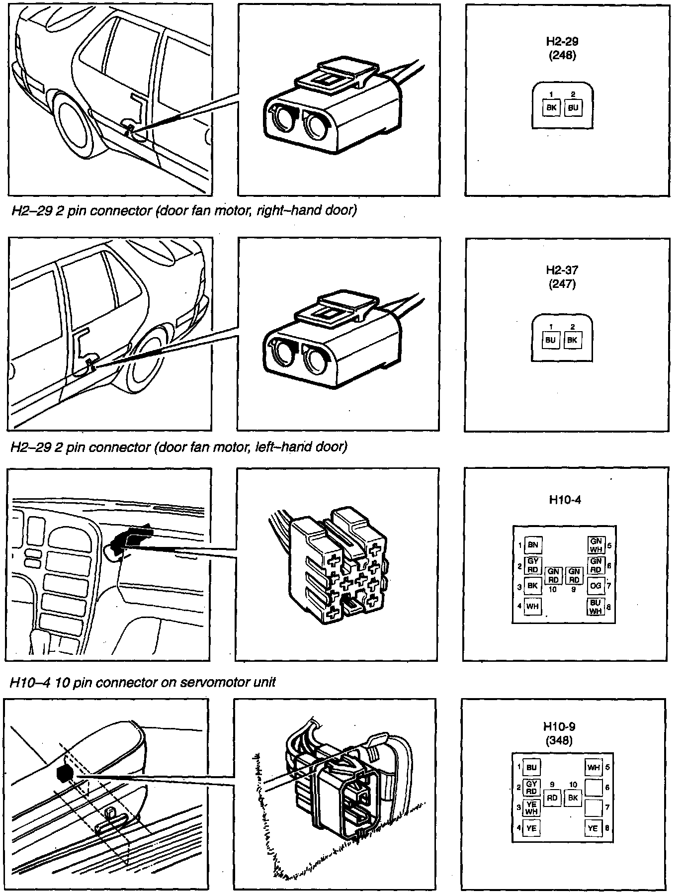 Connectors H2-29 (248), H2-37 (247), H10-4, H10-9 (348)
