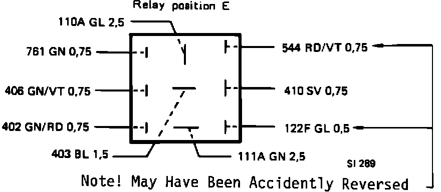 1. Before installing a new relay in earlier cars, first check that the socket (Pos. E) is properly wired. The 2 wires shown below may have been mistakenly reversed.