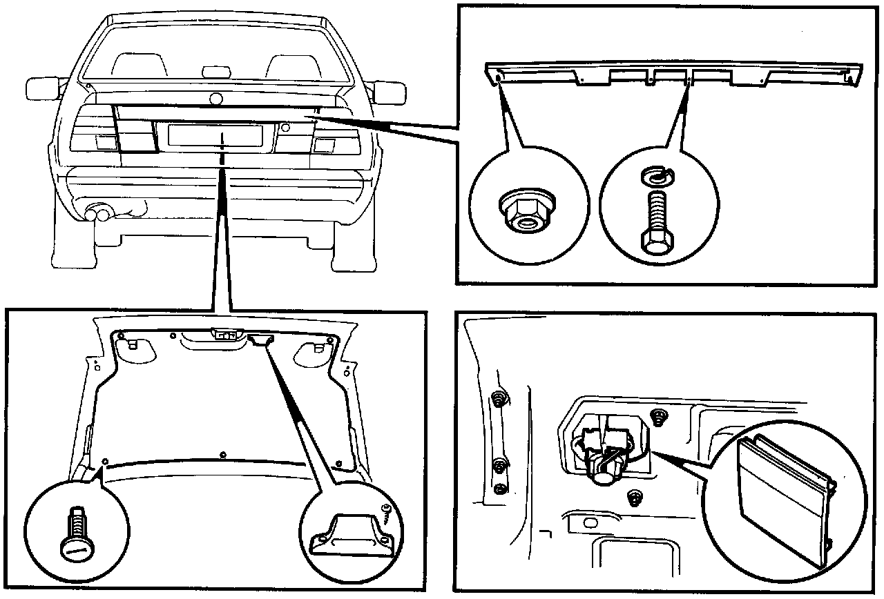 1 Remove the closing handle and the trim on the inside of the boot lid.