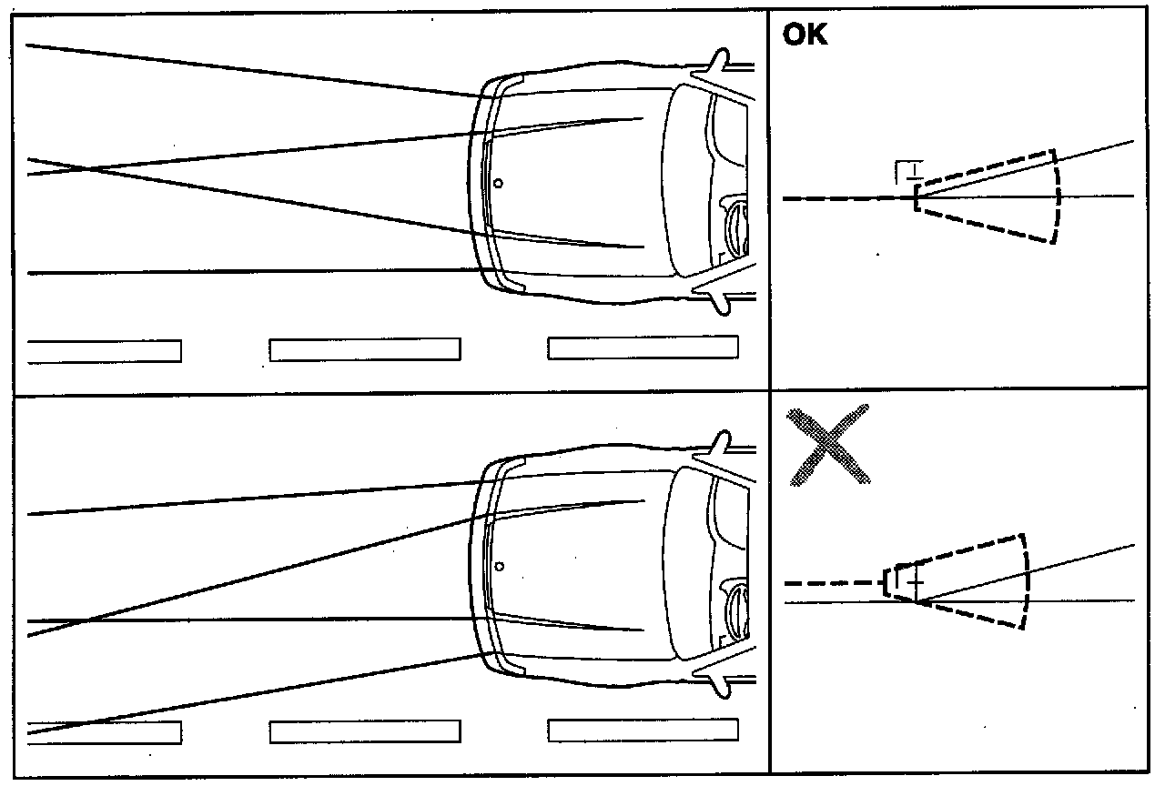 Check the spread of the main beams (usually slightly too far to the left) if difficulty is experienced in aligning the headlamps.