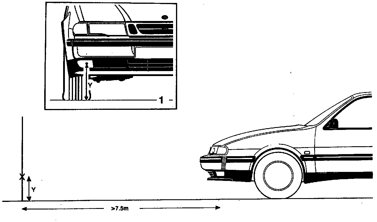 Switch on the headlamps (dipped) and check that the headlamp is correctly aligned vertically. Adjust the height of the beam to the left-hand (LHD cars) or right-hand (RHD cars) horizontal line.