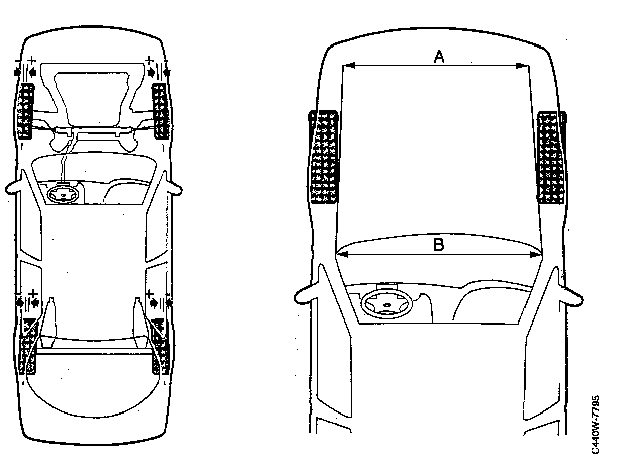 The toe-in value must always be positive, that is to say, dimension B must be greater than dimension A.