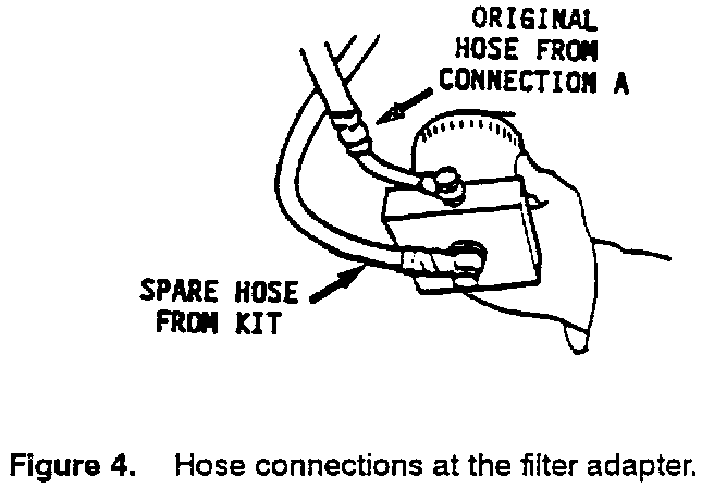Connect the other end of the same spare hose to the top of the filter adapter, Figure 4.