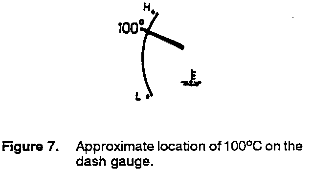 Observe the cars temperature gauge. It should take approximately 15 minutes to reach 100~C (Figure 7) or peak. When it has reached its peak, the thermostat (transmission) has opened and the ATF is being filtered.