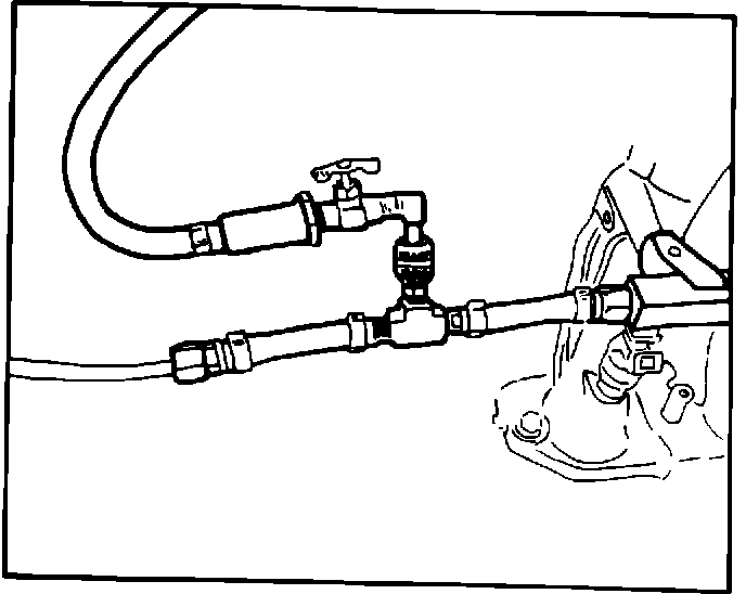 10A. Energize vehicle fuel pumps to fully pressurize fuel rail. Turn vehicle fuel pumps off. Record gauge rest pressure.