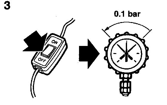 3 Stop the fuel pump by setting the switch to OFF. The pressure should now immediately drop 0.1