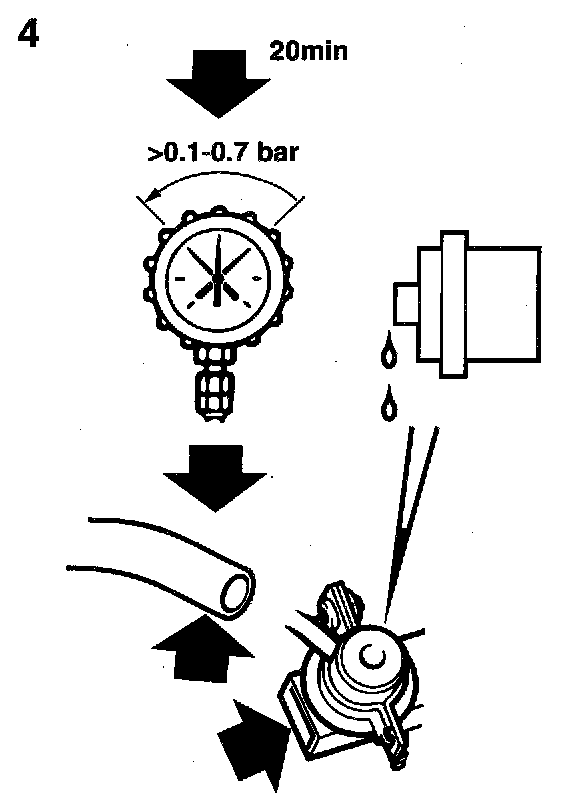 4 If the residual pressure has dropped more than 0.7 bar after about 20 minutes, check the fuel pressure regulator and the fuel pump's non- return valve for leakage.