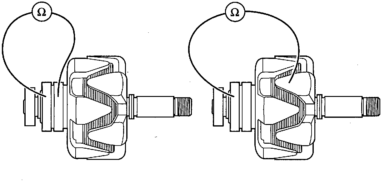 Use an ohmmeter (5 x 1 range) to measure the resistance of the winding between the slip rings.