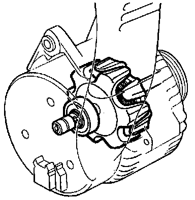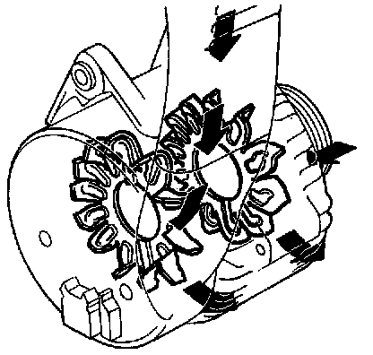 The pulley is equipped with vanes to dissipate the heat which builds up in the generator. When the pulley rotates, the vanes draw in air through the generator to provide the necessary cooling. When the engine is switched off, the battery is the power source.