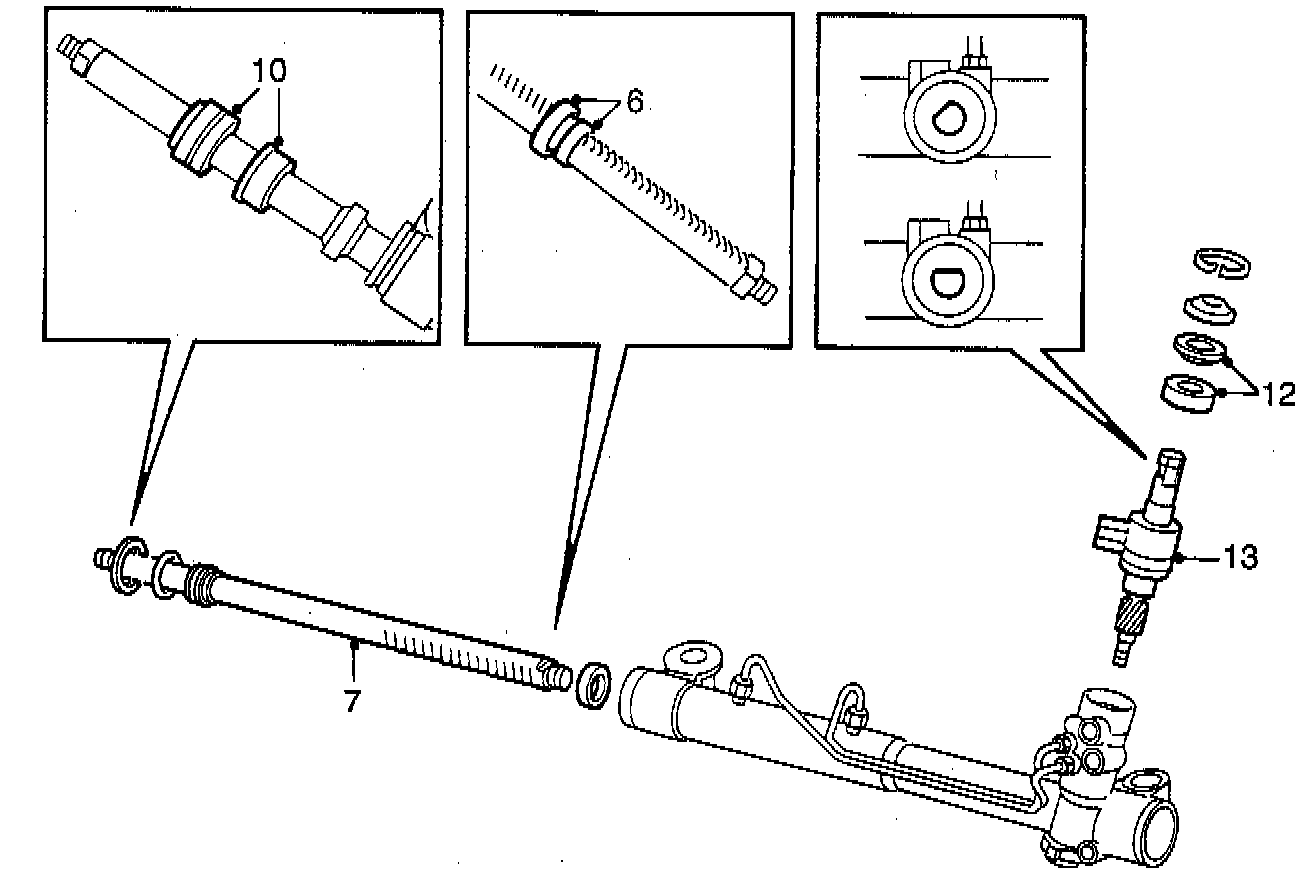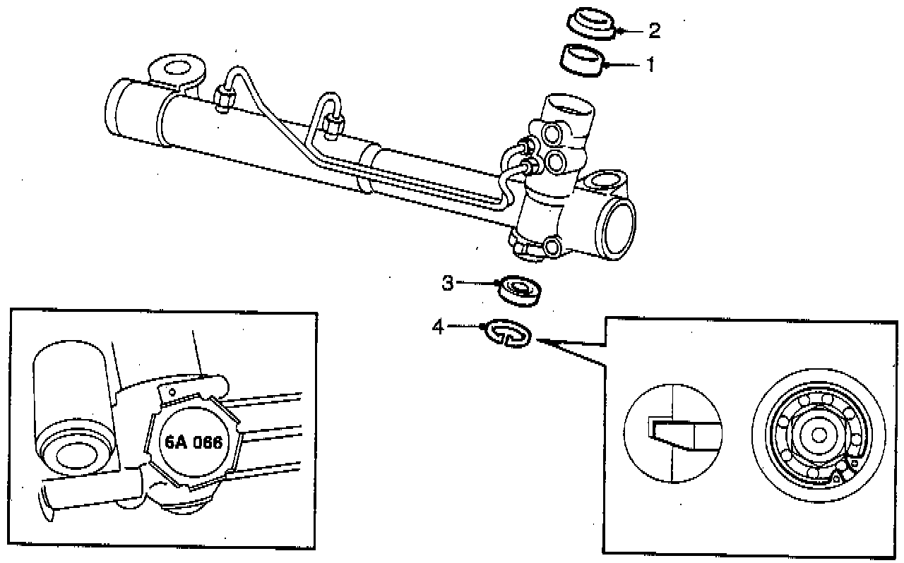 As of date code 6A O66 on the steering gear, the piston must be fitted with both piston ring 89 70 873 and O-ring 89 70 865. The date code is stamped on the damping yoke adjusting screw. The first digit denotes the year of manufacture and the last three digits the day of manufacture. Pistons requiring both a piston ring and an O-ring have a groove adjacent to the piston seal.