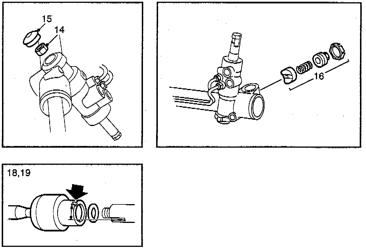 ^ Lubricate the hydraulic components with Saginaw hydraulic fluid, Saab Power Steering Fluid 4634 part No. (45) 30 09 800, or similar.