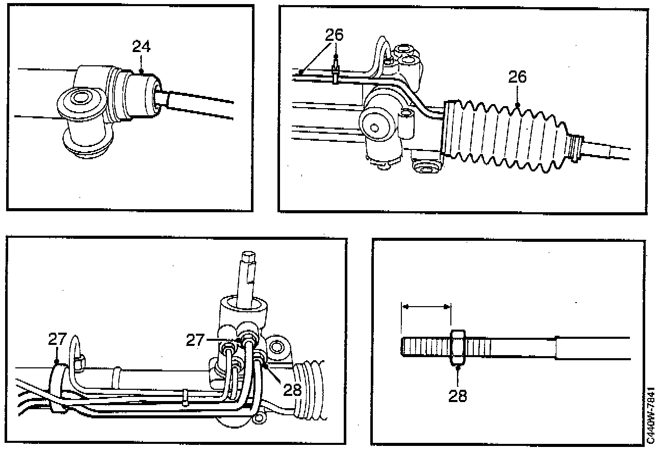 23. Clamp the rack in a soft jaw vice and tighten the inner ball joint using tool 89 96 480, or equivalent.