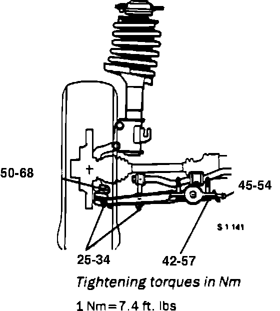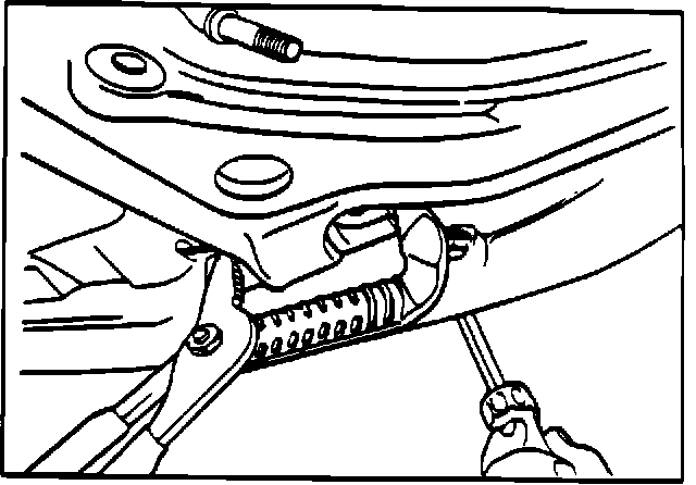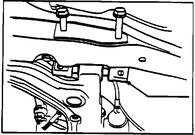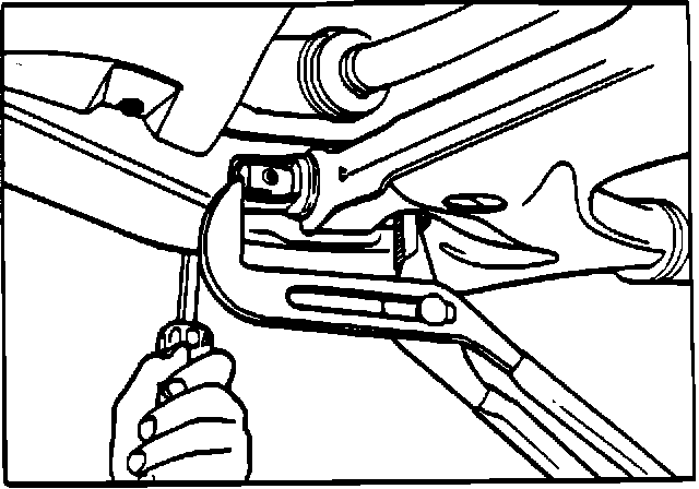 Release the load on the suspension arm bushings by positioning the suspension arm as shown.