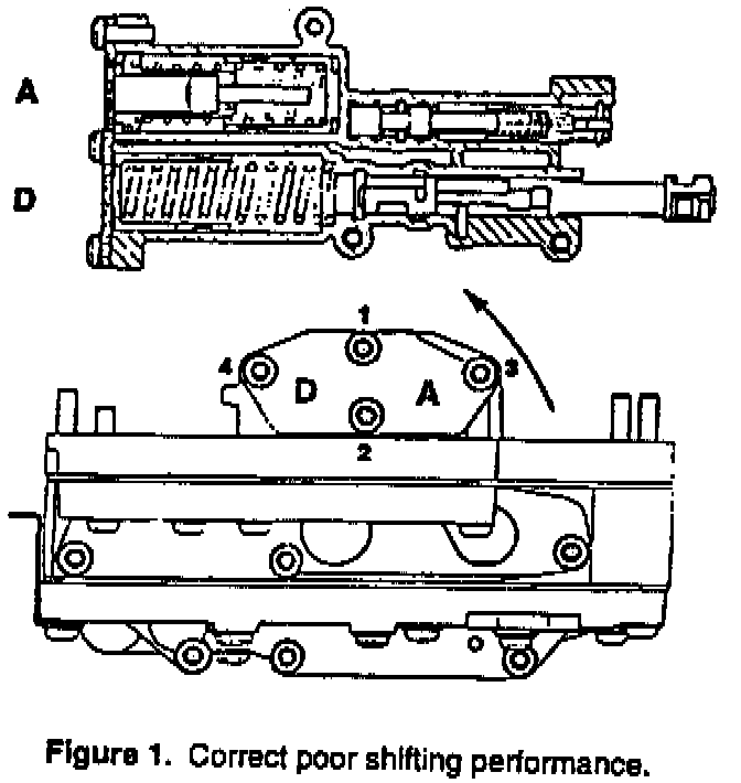 On 1991 9000 models, you may receive customer complaints of hard or delayed engagement or hesitant shifting between 4th and 3rd gears. This may be due to deformed, bent or broken accumulator springs. Refer to the procedure below to correct this complaint.