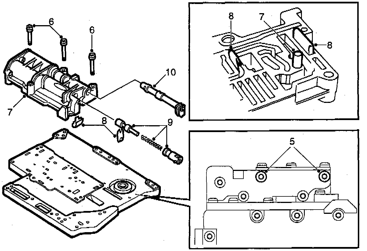 6. Remove the three screws securing the accumulator housing to the lower part of the valve body.