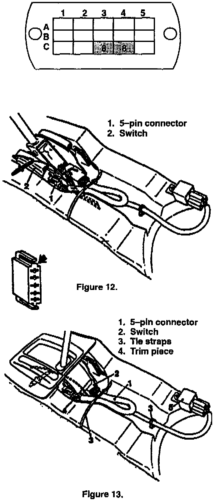3. Cut the two tie straps which fasten the new wiring harness. Reposition the eight-pin connector in front of the air duct and in between the shift lever bracket as shown in Figure 12.