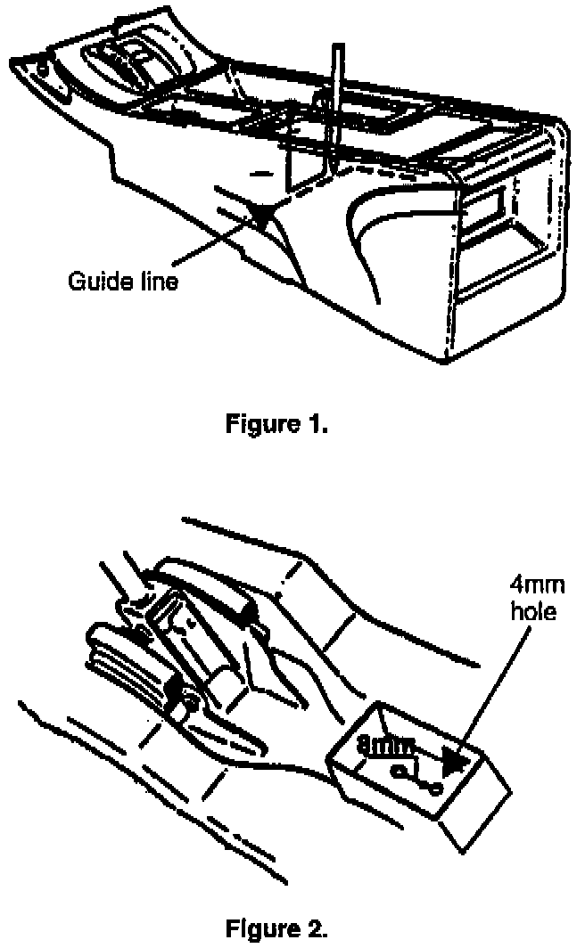 2. Mark a guide line on the right hand side of the air duct just behind the center bulkhead of the console and rearward along the right edge of the console. See Figure 1. This line will provide the proper installation position for the relay so it will not interfere with refitting the center console.