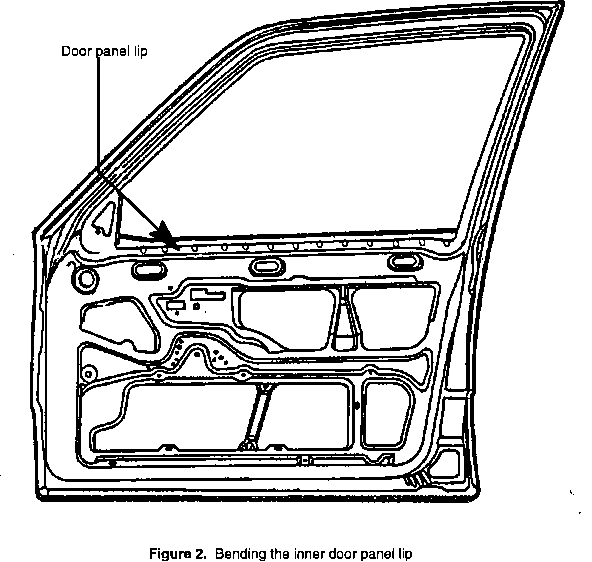 9. Using welding pliers, carefully bend the lip of the inner door panel inward (away from the glass) approximately 2 mm. See Figure 2.