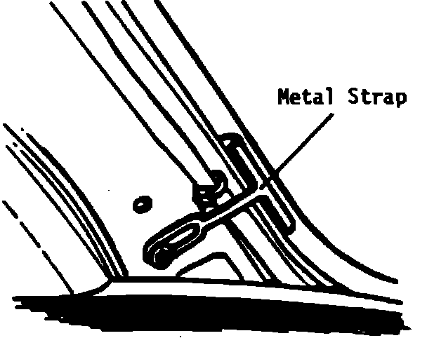 Screw in and tighten the four sheet metal screws supplied with the windshield kit. Also supplied are four plastic hole inserts. These are only to be used with cars that were factory fitted with the strap.