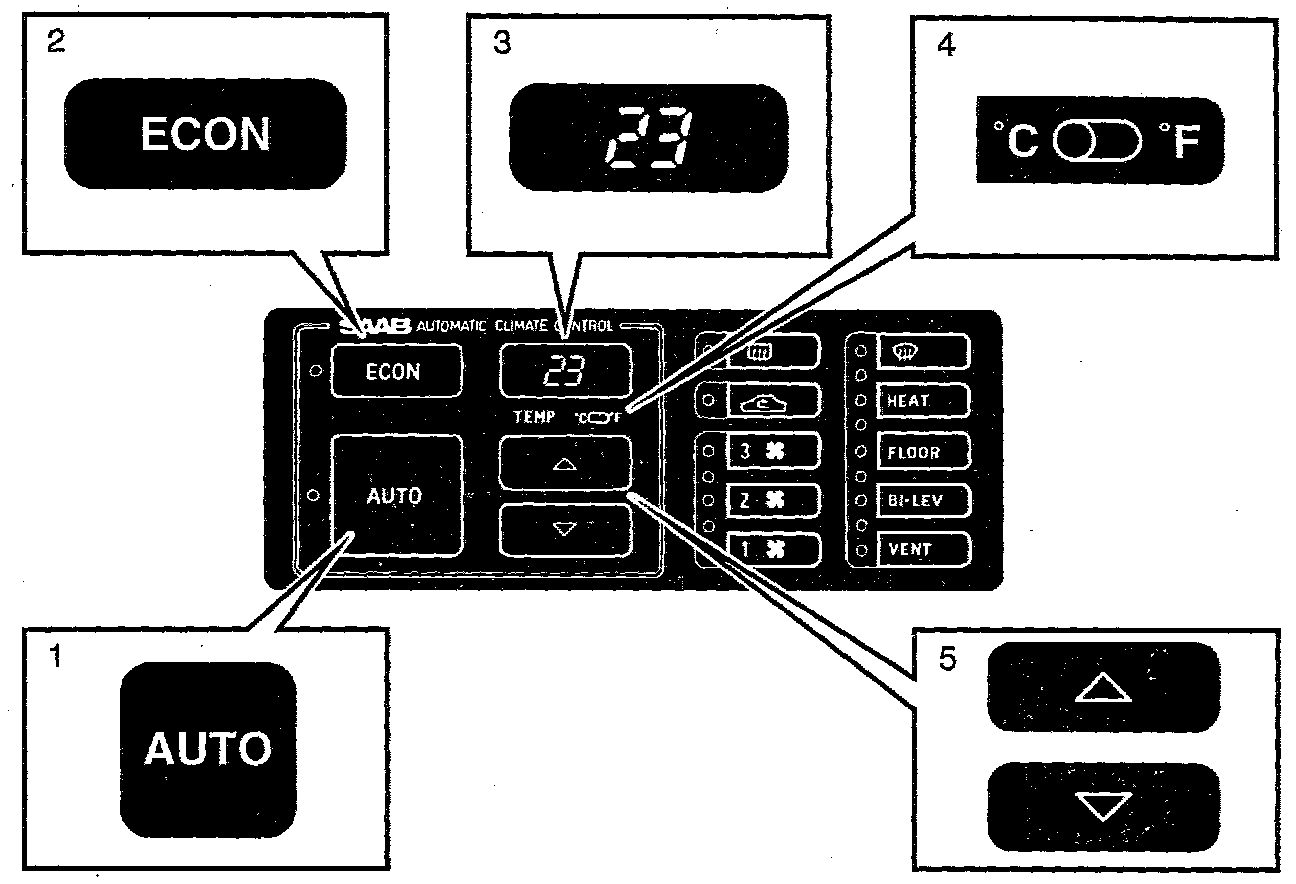 Prevents the A/C system and recirculation being engaged. Other features are automatically controlled. The ECON LED lights.