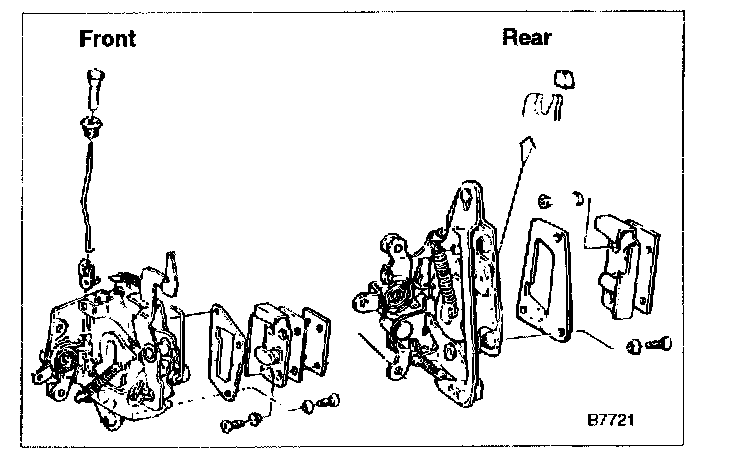 ^ Do not bend or distort the link rods. The latch mechanism will not work property when the bent links are reinstalled.