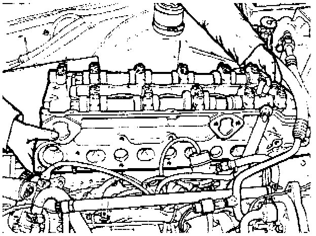18. Remove the valve cover. Disconnect the crankcase ventilation hose and remove the split rubber plugs from the cylinder head.