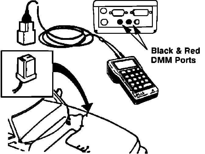 1. Connect the appropriate accessory cable to the vehicle test plug and to the black and red DMM ports on the ISAT (See Figure 1).