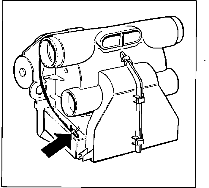 To avoid any unnecessary searching and hunting on the 1992 9000 (005 model) while installing the optional cruise control, the vacuum hose for the cruise control pedal switches is located on the left side of the air distribution plenum as shown in the diagram.