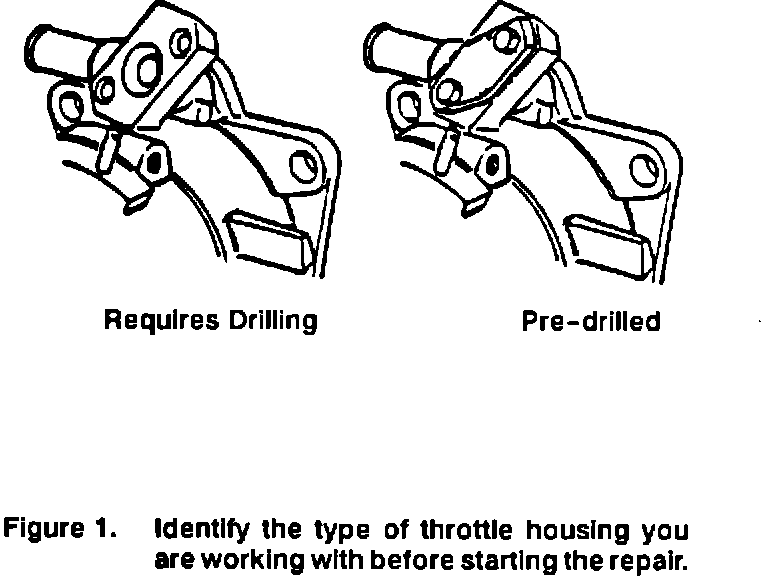 1. Identify the type of throttle housing fitted on the car (Figure 1). Late-1988 and later models have throttle housings that are pre-drilled to accept the cold start valve and are fitted with a cover plate. Remove the plate and proceed to step 5. If the throttle housing is not pre-drilled, proceed to step 2.