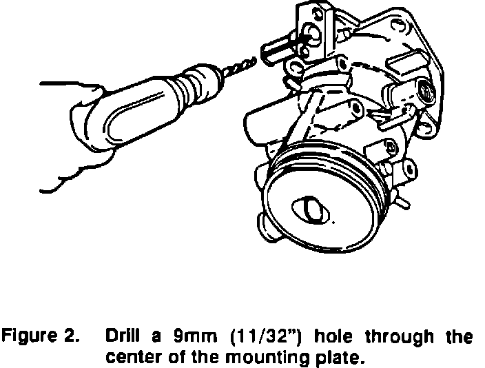 3. Find and mark the center of the mounting flange for the cold start valve (Figure 2). Drill a pilot hole at the center and then a 9 mm (11/32") diameter hole. Clean all shavings and deburr the hole after drilling.