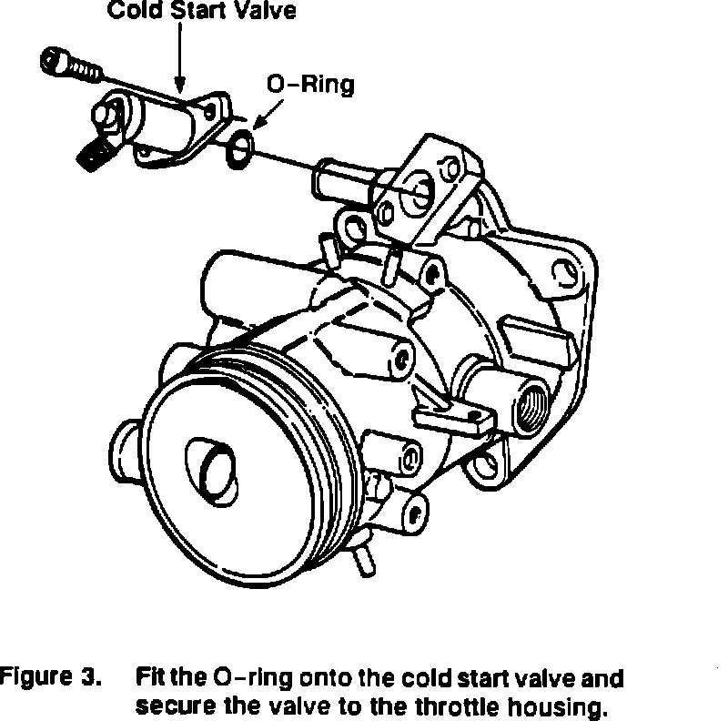 5. Fit o-ring 81 09 548 to cold start valve 74 86 129. Mount the valve, with the electrical connector facing the engine, to the throttle housing using selftapping screws 75 07 072 (Figure 3).
