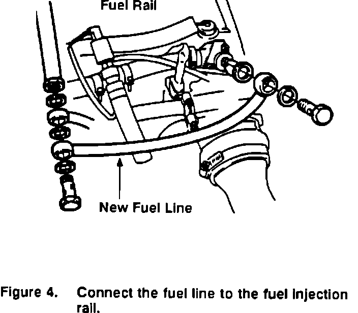 7. Connect the fuel line for the cold start valve, P/N 75 37 681, to the fuel rail using the longer banjo bolt, P/N 75 81 143, and three new sealing washers, P/N 83 26 704, supplied in the kit (Figure 4).
