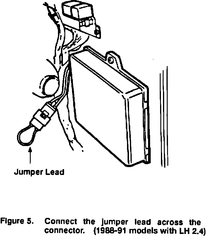 Loosen the right-side carpet to expose the LH ECU. Locate the 2-pole connector containing GN/YL and GR/WH wires coming from the ECU. Install jumper lead 85 98 526 supplied in the kit to the connector (Figure 5). Refit the carpet.