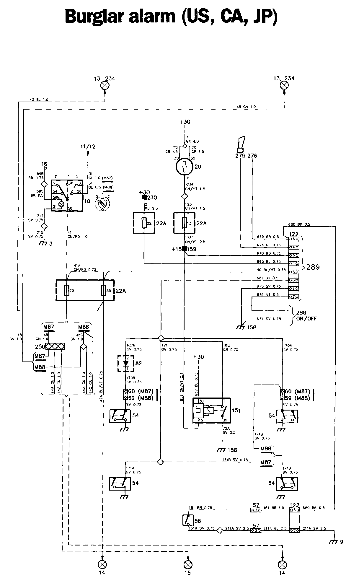 A special cable harness and eight-pole connector 289 for connecting the control unit for the burglar alarm are included.