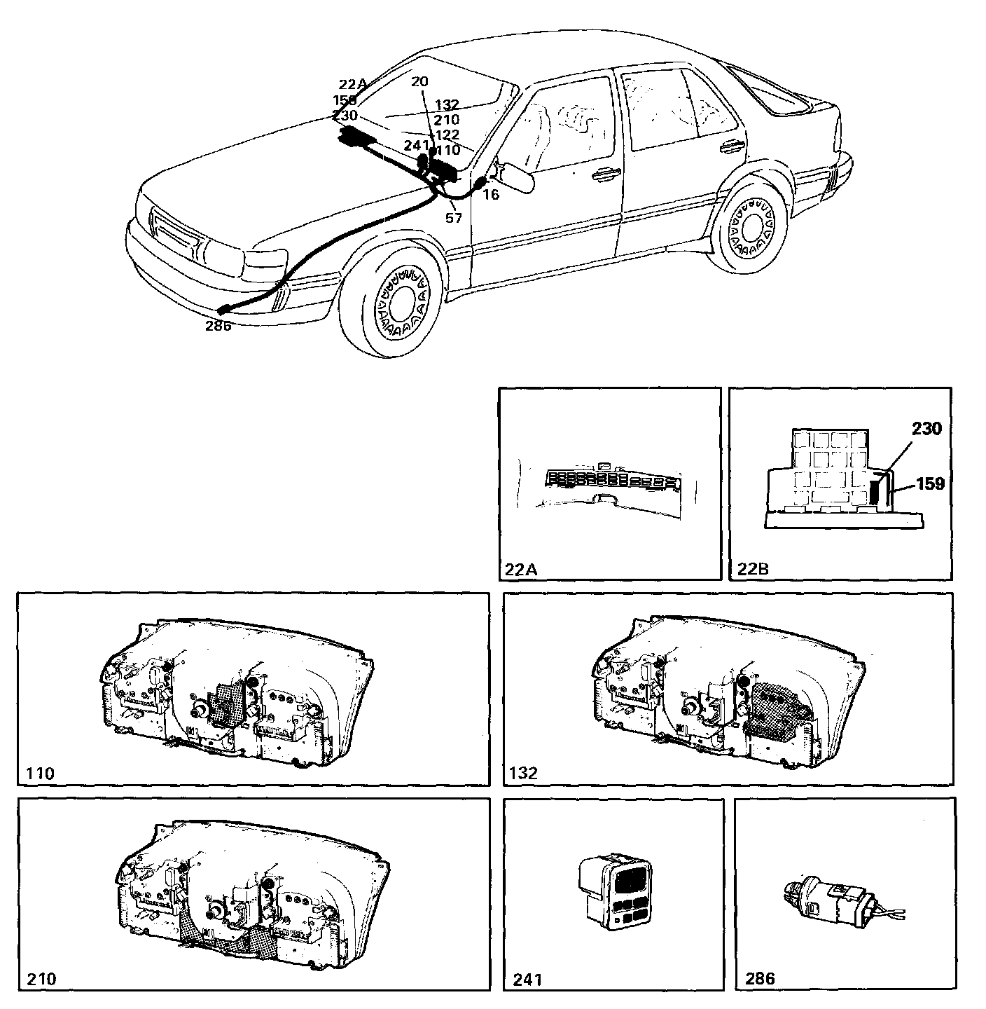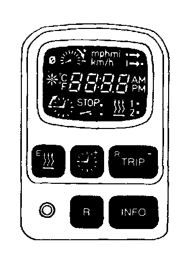 The purpose of the sensor is to control the brightness of the display automatically under daylight conditions. Under conditions of darkness, the brightness can be control led by means of the instrument lighting rheostat, located on the facia. Buttons R and INFO are used for the EDU trip computer. These are connected to EDU 210, together with the brightness control wiring, across a separate connector (122).