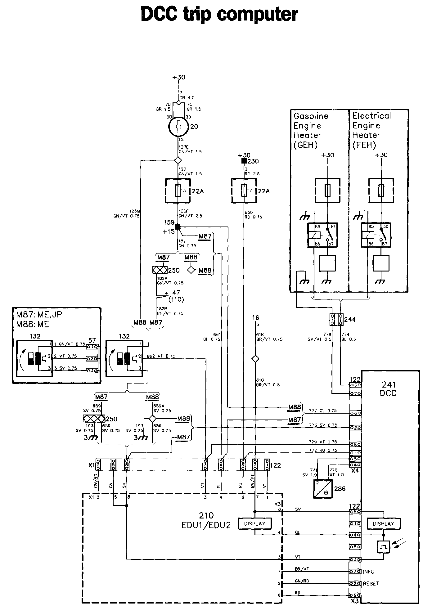 DCC trip computer 241 is supplied from fuse 17 (constant supply) and from fuse 13 when the ignition switch is in the drive position.