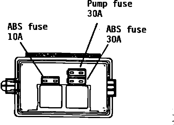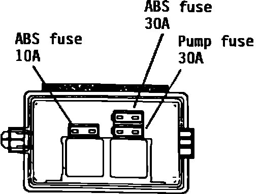 For 9000 models up to VIN Serial Numbers J1011239 and J2005632, the markings on the ABS fuse box cover do not match the positions of the two 30 amp fuses (Figure 1).